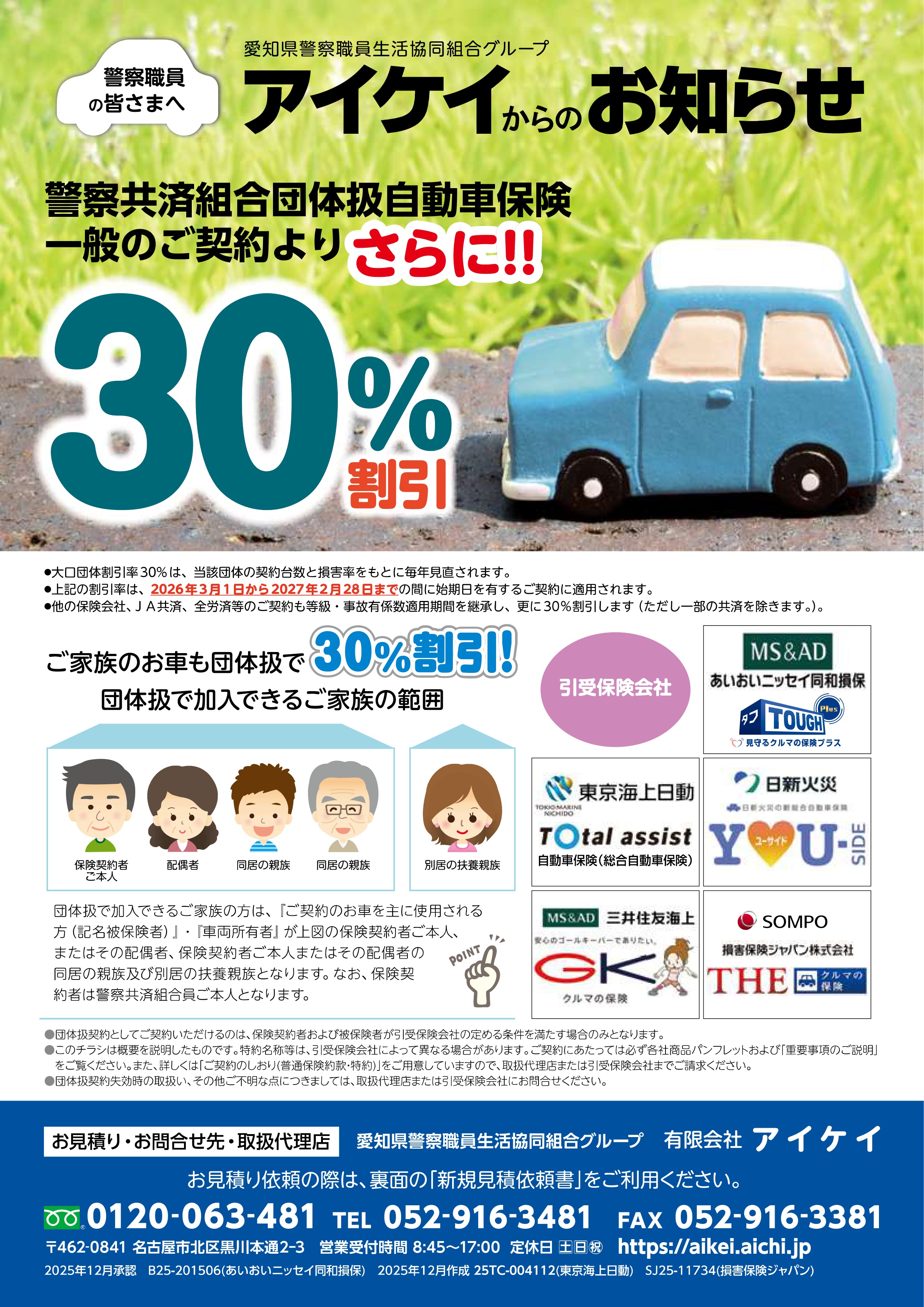 フリーダイアル 0120-063-481 - 出張事務所(愛知県警察職員生活協同組合内)